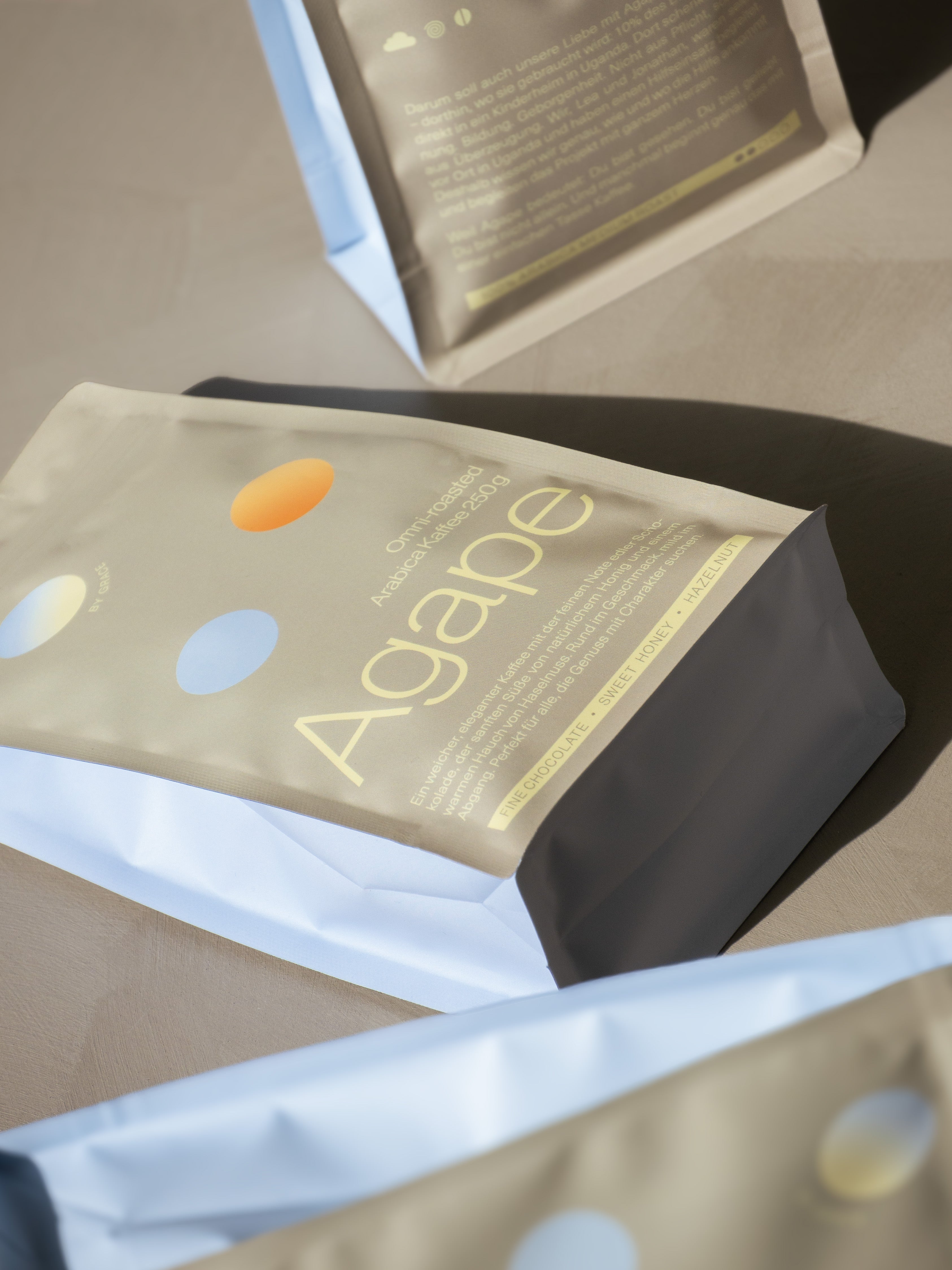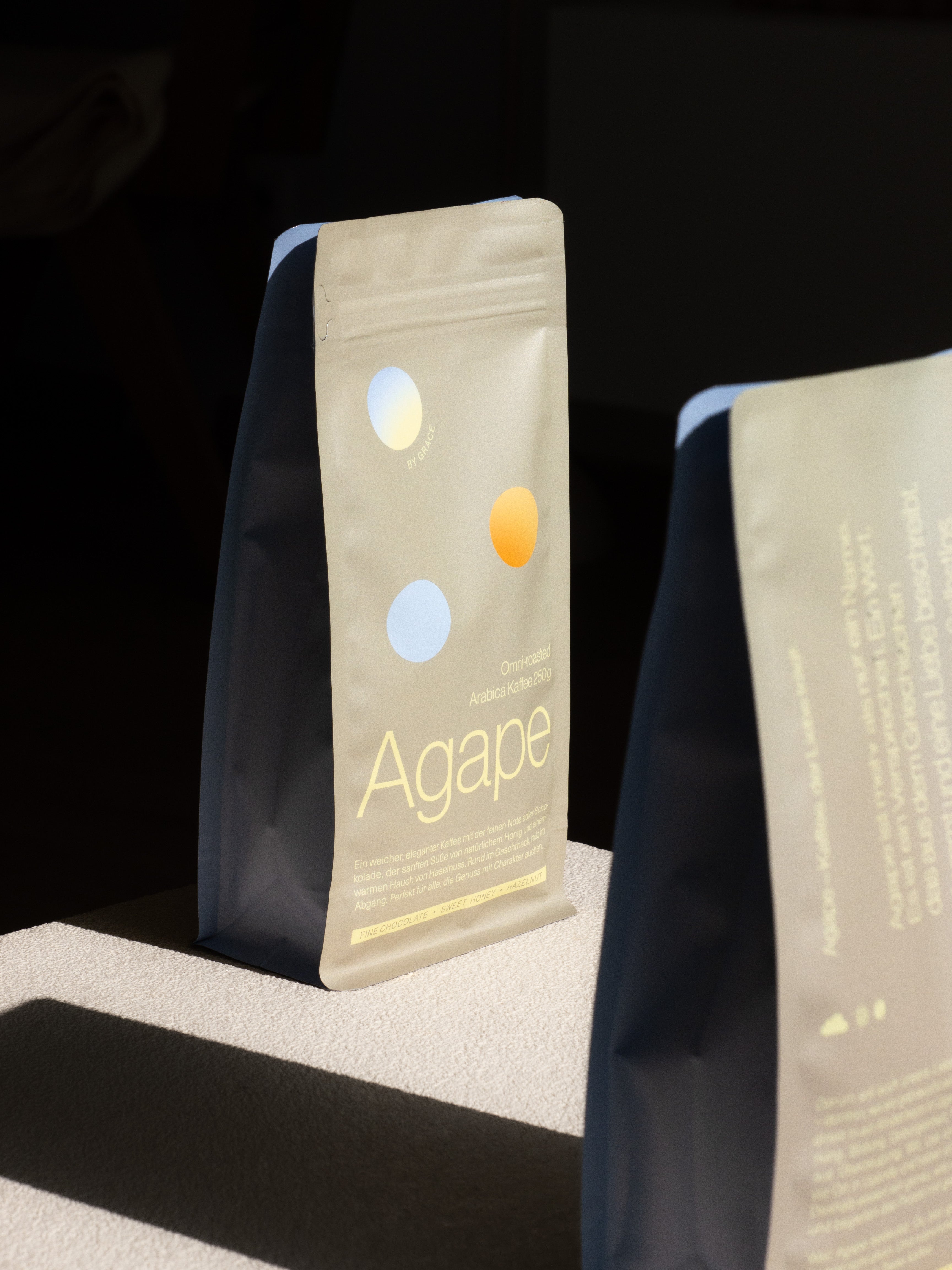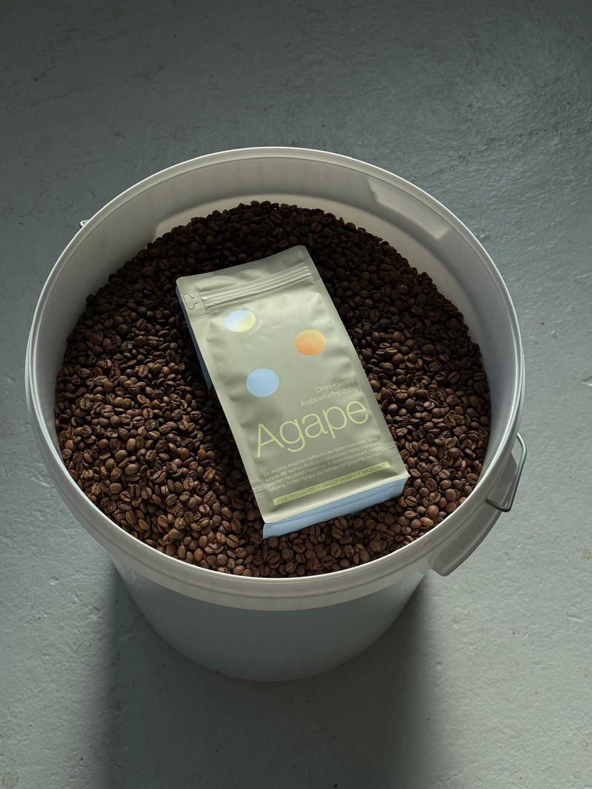 Agape besteht aus sorgfältig ausgewählten, sortenreinen Arabica-Bohnen. Diese stammen aus verantwortungsvoller Landwirtschaft und werden in einer kleinen deutschen Rösterei langsam und schonend veredelt. Das Ergebnis: Ein klarer, ausgewogener Geschmack ohne Bitterstoffe. Vollmundig, elegant, hochwertig.